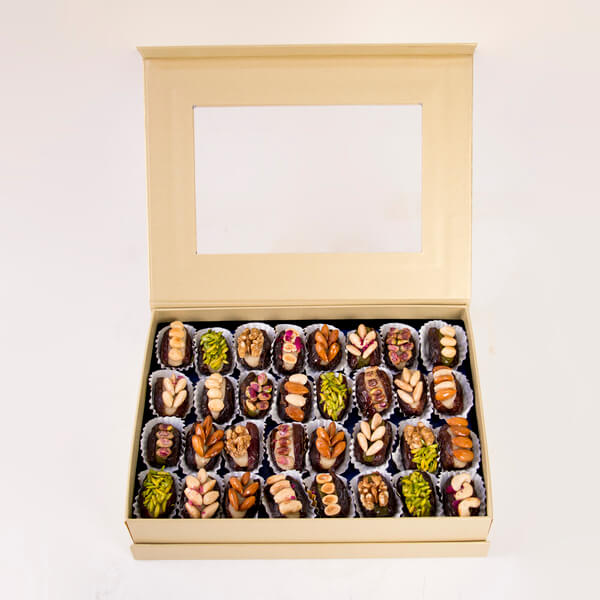 Discover our premium Date and Nuts collection, featuring hand-stuffed Medjool dates filled with rich nuts and indulgent flavors. Perfectly crafted for gifting, celebrations, or a luxurious treat, each assortment blends naturally sweet dates with crunchy pistachios, cashews, walnuts, and more. Explore our elegant boxes and enjoy a gourmet experience that combines taste, quality, and artisanal craftsmanship.